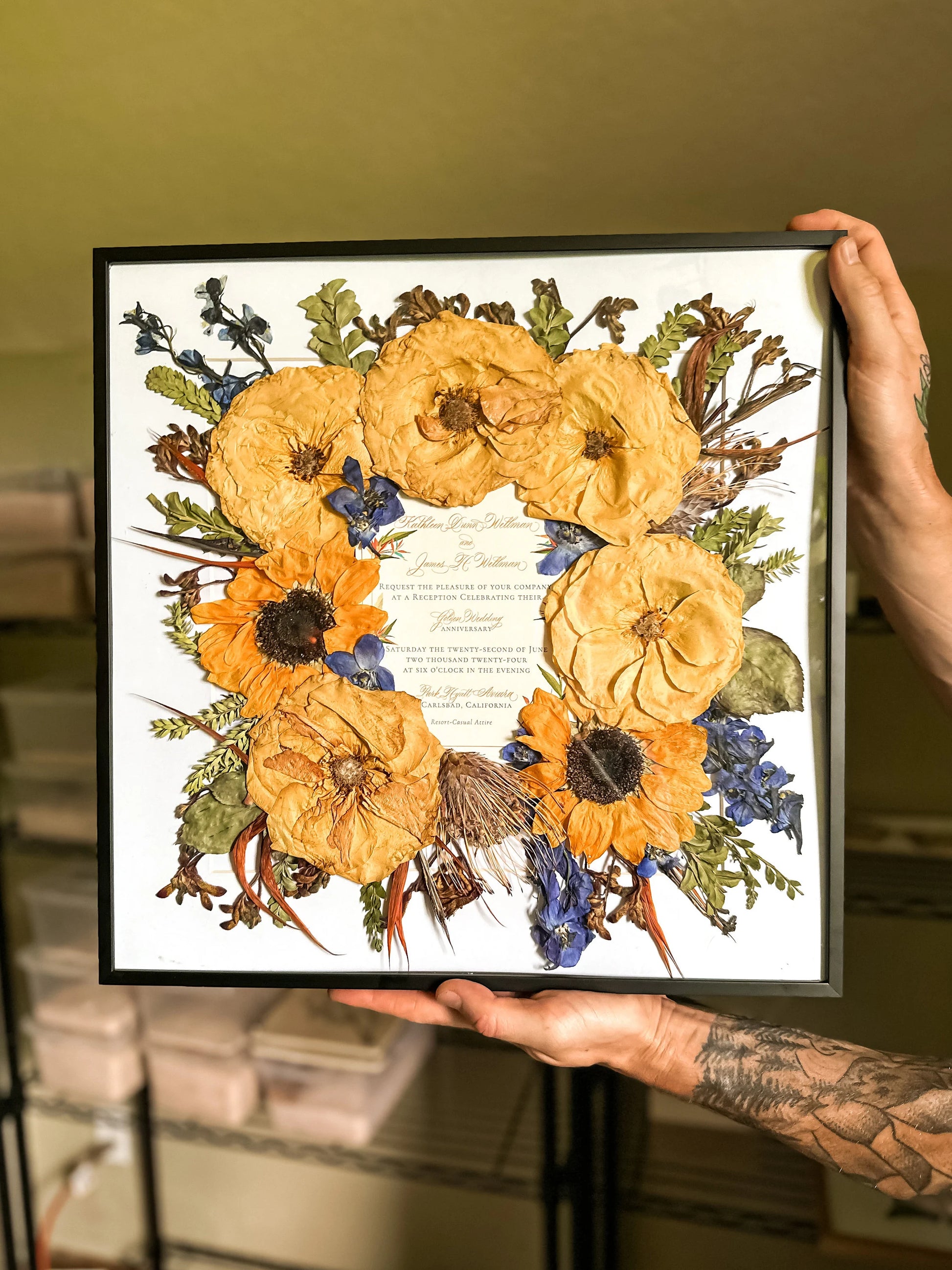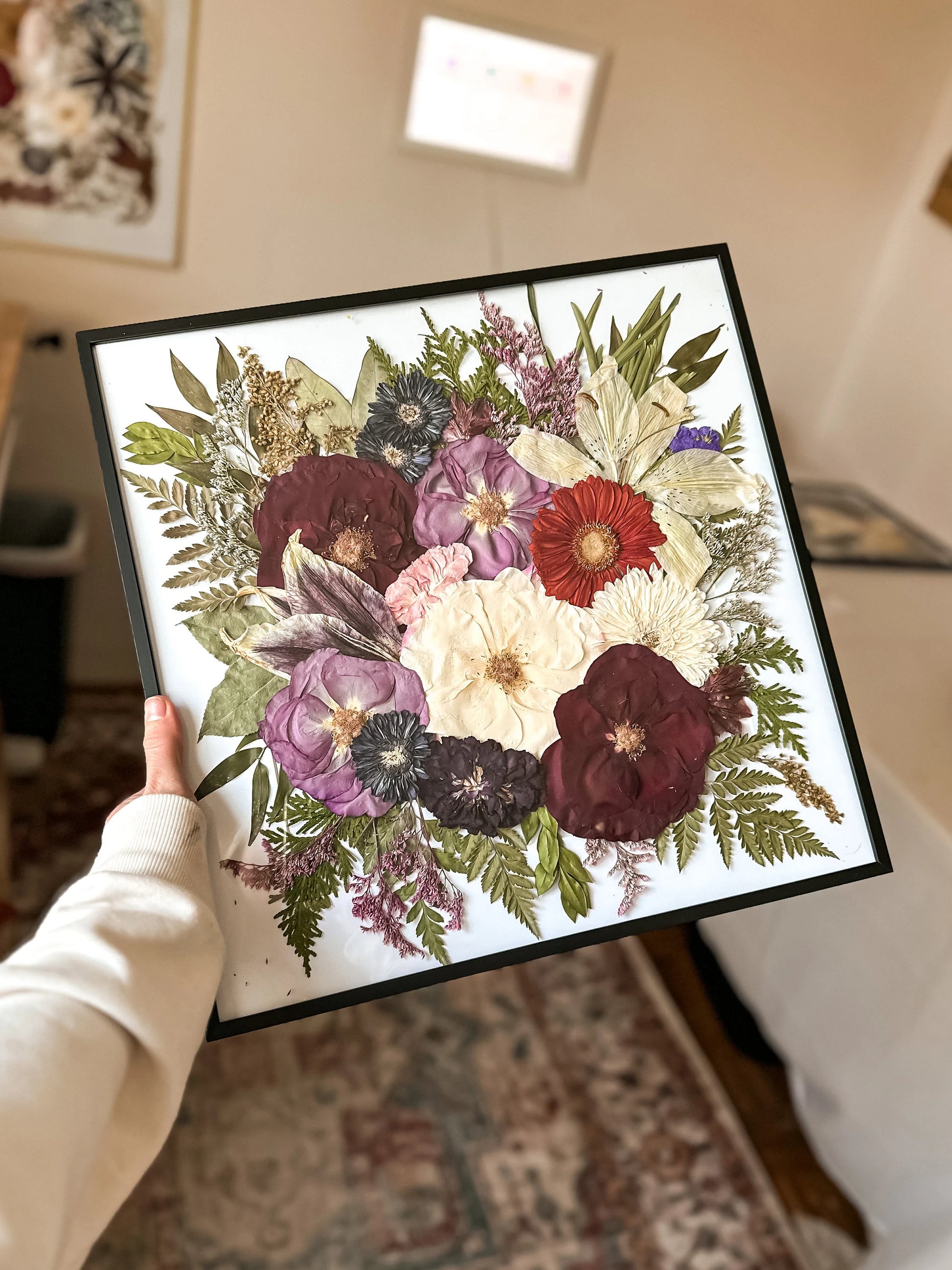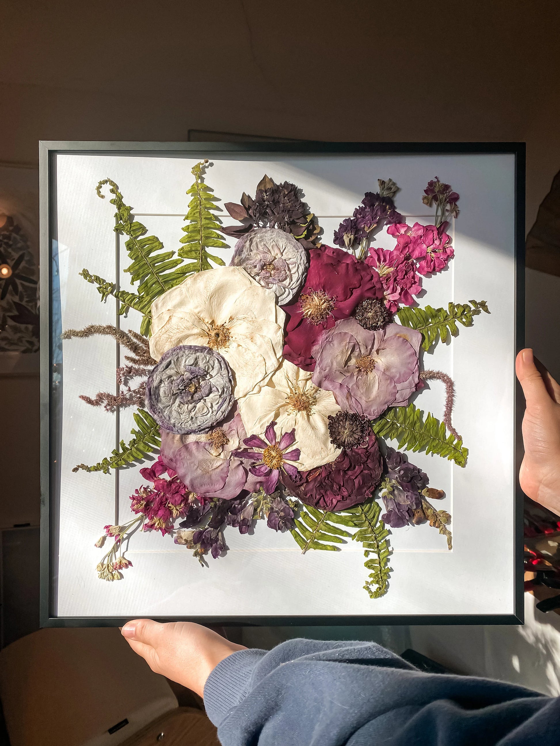 1. Our shop is unique in the way that we DO NOT require you to make a reservation for your bouquet to be pressed. The day after or a week after your event rolls around and you panic search to have someone press/frame your bouquet, don't worry, you're in the right place!