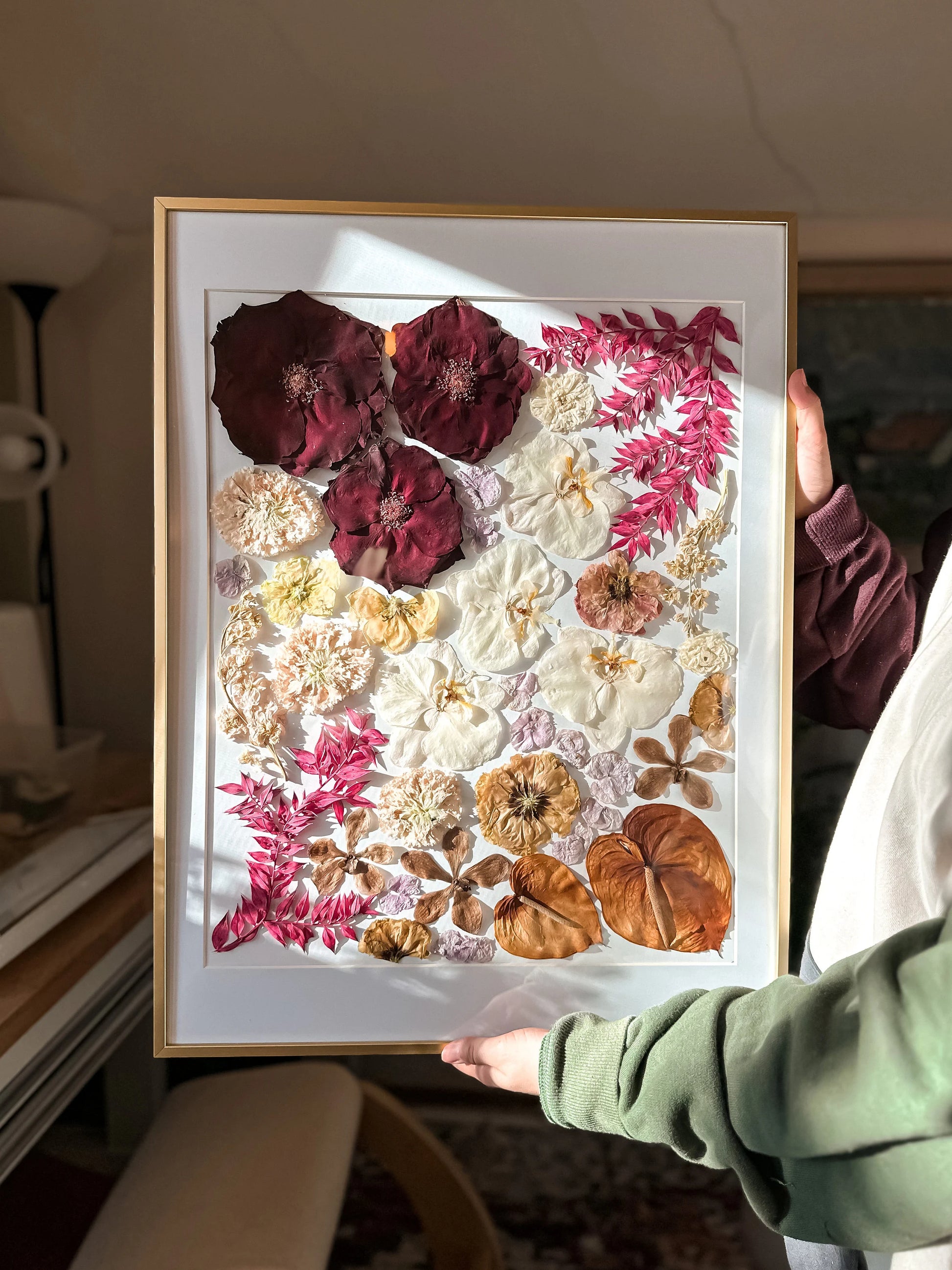 3. The larger the frame the more flowers we can showcase, just keep this in mind while ordering!